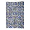 comprising four full tiles and two cut-down tiles, underglaze decoration in polychrome on a white ground, the tiles joining to form an overall design of a flower-filled ogival lattice with large lotus flowers and tulips