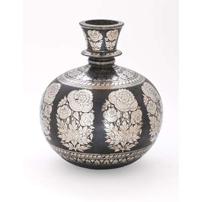 A SILVER-INLAID COPPER ALLOY BIDRI HOOKAH BASE DECORATED WITH POPPY SPRAYS