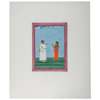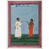 gouache on paper heightened in gold, depicting a gentleman offering a courtesan a rose, the courtesan holding a betel leaf out to him, pink border with black margin rules, mounted, glazed and framed