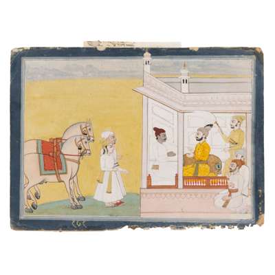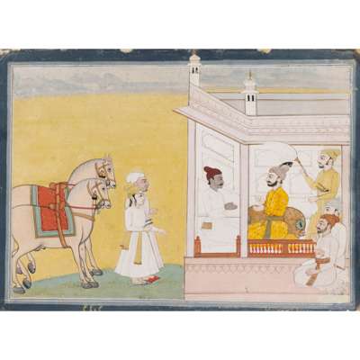AN ILLUSTRATION FROM THE MAHABHARATA, NALA AND DAMAYANTI: KING BHIMA PRESENTED WITH TWO STALLIONS ‡