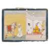 This delightful illustration to the Mahabharata, relating to the part devoted to Nala and Damayanti, depicts King Bhima inspecting the two charioteers Varshneya and Varukha not realising that Varukha is his daughter Damayanti in disguise.