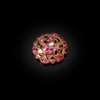 of circular form with small suspension hoop, the gilt metal openwork frame set with rubies, emerald and quartz, forming a bird design to the centre