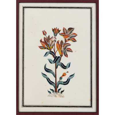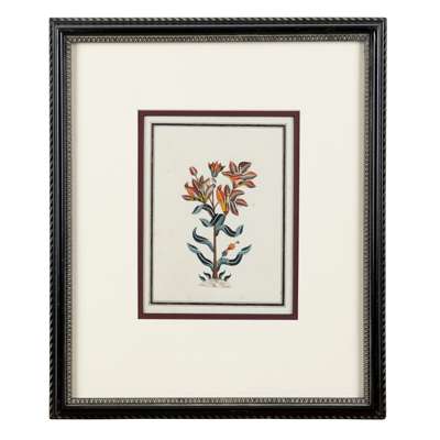 ink and watercolour on paper, depicting a single flower, mounted, glazed and framed