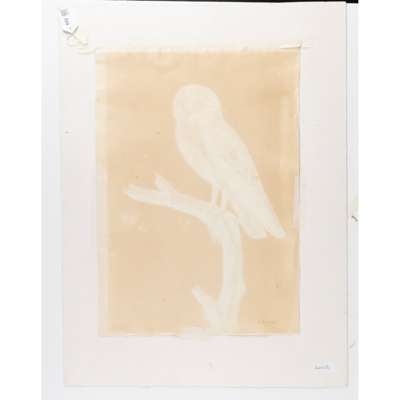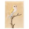 watercolour on paper, watermarked 'IHS I VILLEDARY, depicting an owl with his white chest and light brown wings, perched on a branch