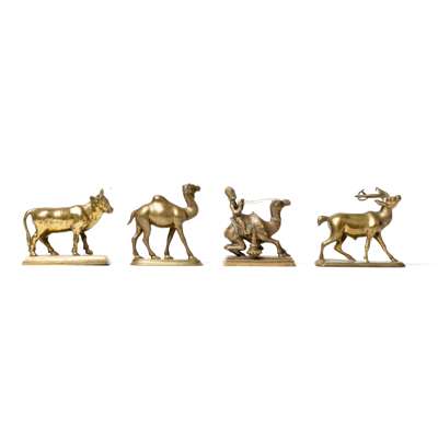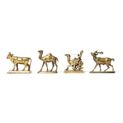 cast brass, comprising a cow, a camel, a camel and rider, and a deer