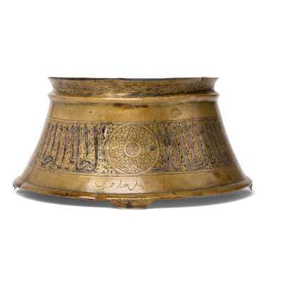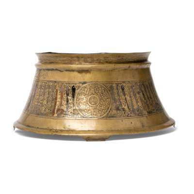 For a comparable candlestick base, see Bonhams, Islamic and Indian Art, London, 12 November 2024, lot 66.