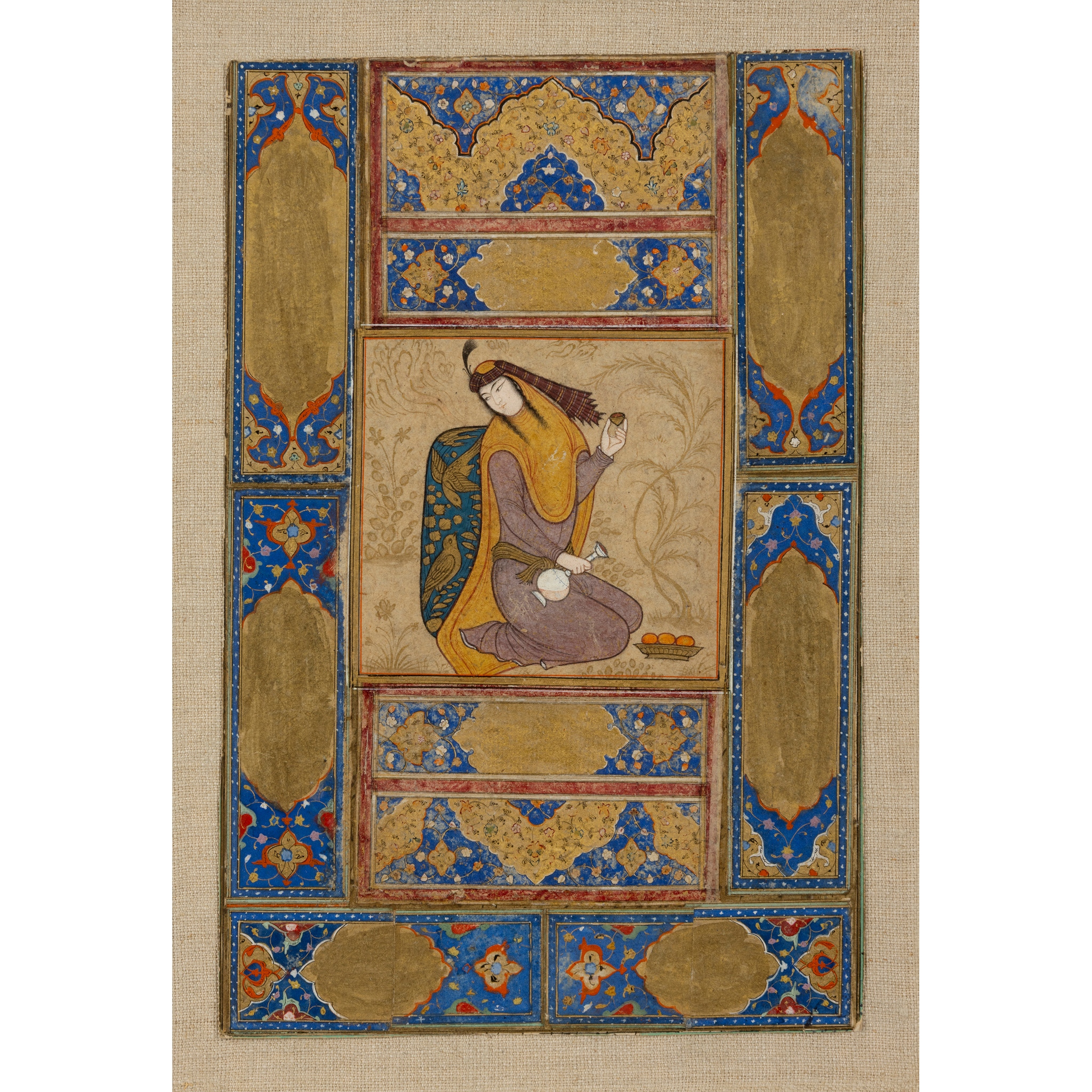 A SAFAVID DRAWING WITH ILLUMINATED MOUNTS