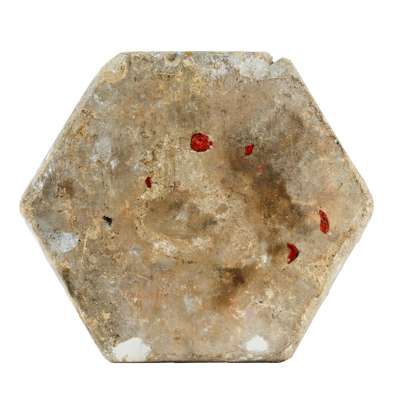 During the conservation of the Çinili Hamas which took place from 2010-23, fragments of tiles were found under and above the wall plaster, including several pieces of the same design as this tile (see Özbay and Şengozer, Barbarossa’s Cinili Hamam: A Masterpiece by Sinan, 2023, figs. 4.6e and 4.7 pattern 20). Exactly where this tile design was placed within the hamam is unclear, it is certain that both the men’s and women’s sections were decorated in this fashion, and hexagonal tiles appear to have been used side-by-side to create uninterrupted walls of a single design (opp, cit, pp. 192-7).