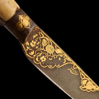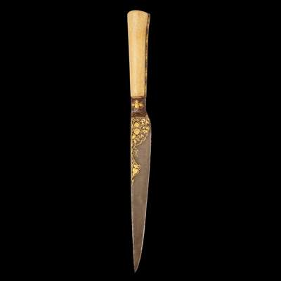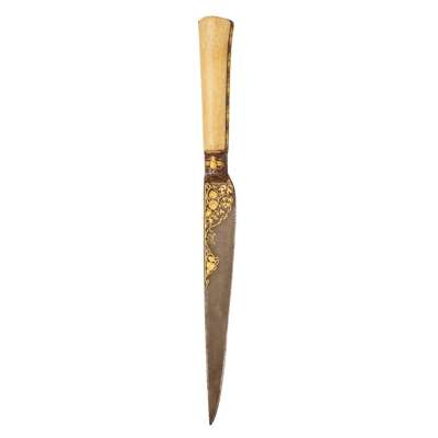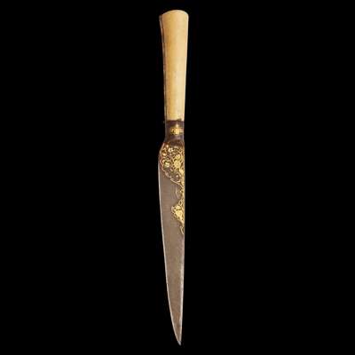 AN OTTOMAN GOLD OVERLAID STEEL KNIFE Y