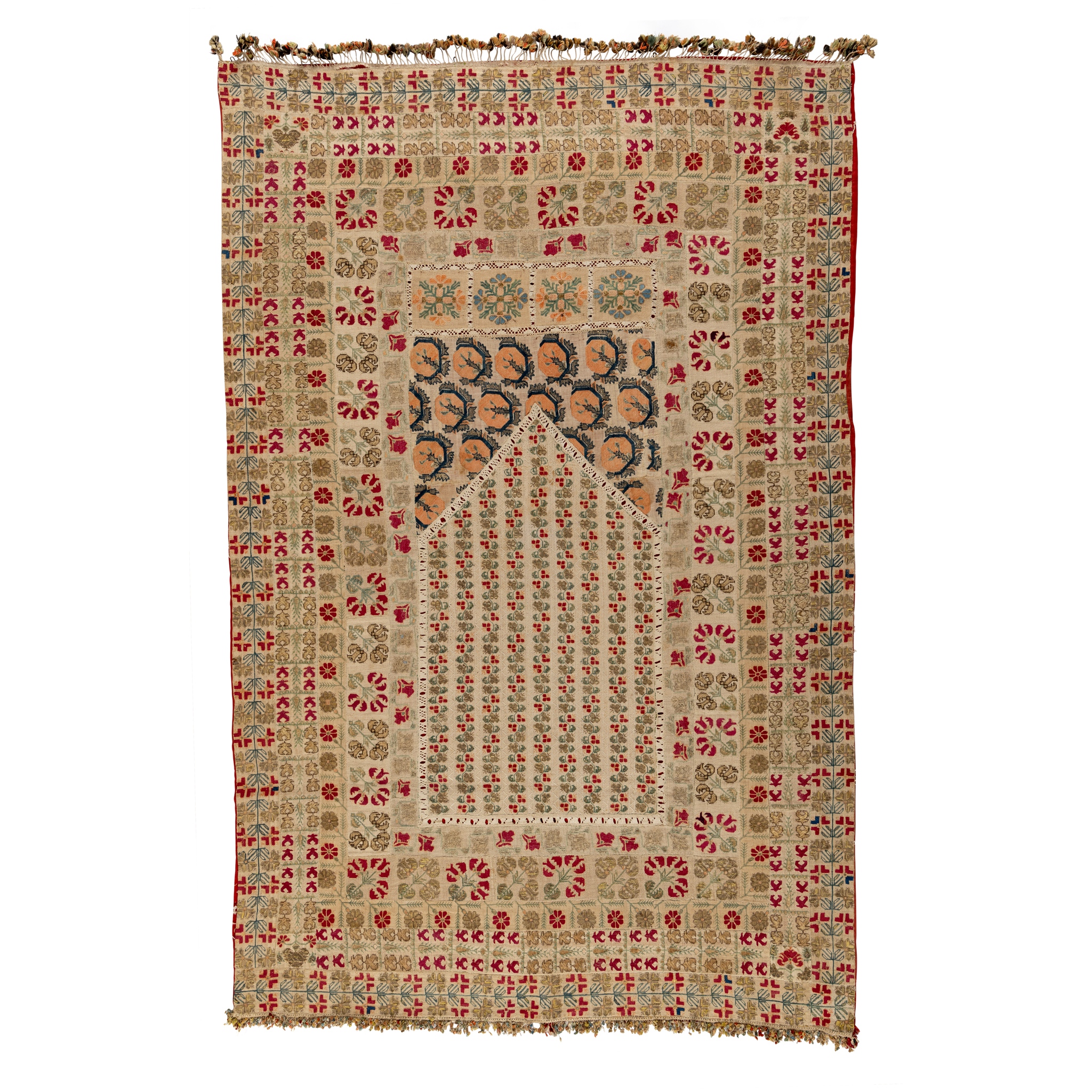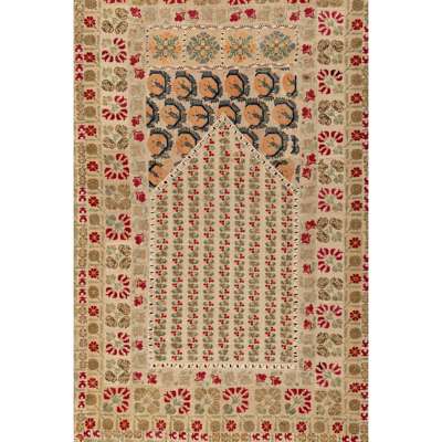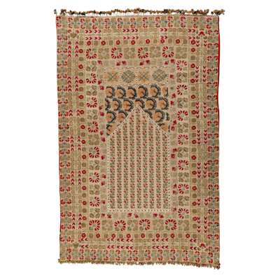 AN EXQUISITE OTTOMAN EMBROIDERED WOMAN'S PRAYER PANEL