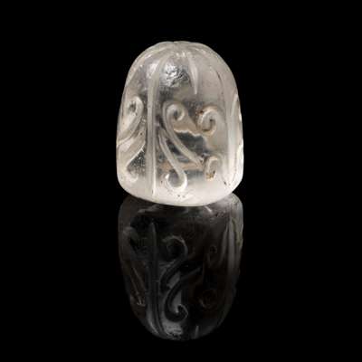 This small and exquisite rounded chess piece cut with U-shaped and arabesque designs, shares similarities with pawns that form a group of ten chess pieces in the Al-Sabbah collection that are cut in the ‘bevelled’ style (see D. Freeman Fahid, Chess and other Games Pieces from Islamic Lands, London, 2018, p. 183, Cats. 77-82).