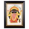 gouache on paper, depicting a large-size black figure of Kali holding a sickle and severed head in her left hands, glazed and framed