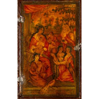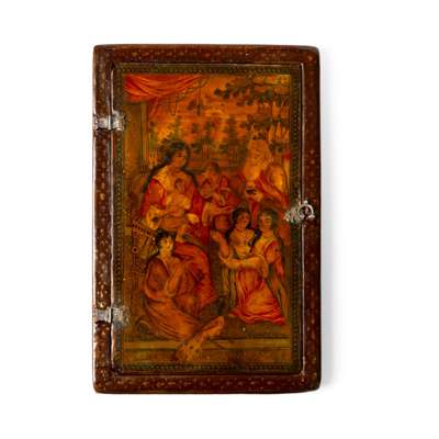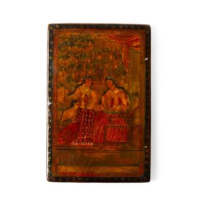A QAJAR LACQUER PAPIER-MACHE MIRROR CASE