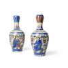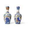 each of pear-shape decorated in polychrome under a transparent glaze with seated figures meditating within a landscape