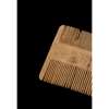 carved wood of rectangular form, with teeth on either end, the central panel decorated in relief with a line of cursive Arabic script, decorated with small circles