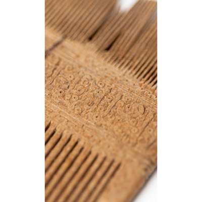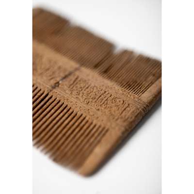 Combs, such as this rare example, symbolise the nexus between beauty and function in Islamic art. They are at once practical objects which played an essential part in personal hygiene and adornment but are also themselves adorned with fine calligraphy which permits them to ‘speak.’ As with other combs produced in the Mamluk period, this example has two sets of teeth; the thicker to detangle and unkink hair, and the thinner for removing lice, dirt, and other residues. Cleanliness is described as ‘half of faith’ in one hadith, and such religious exhortations to self-care went hand in hand with the exigencies of life in a bustling medieval metropolis such as Cairo, creating a market for combs and other toiletries which were also beautiful (C. Gruber and A. Dimmig, Pearls of Wisdom: The Arts of Islam at the University of Michigan, Kelsey Museum of Archaeology, 2014, pp. 7-8). The Mamluk-era Egyptian historian al-Maqrizi stated that there was an entire market given over entirely to the sale of combs (the suq al-amshatiyyin) located in what was then the very centre of Cairo between the Madrasa al-Salihiyya and the gold market (A. ‘Abd ar-Raziq, “Les peignes égyptiens dans l'art de l'Islam” in Syria, T. 49, Fasc. 3/4 (1972), pp. 411-12).