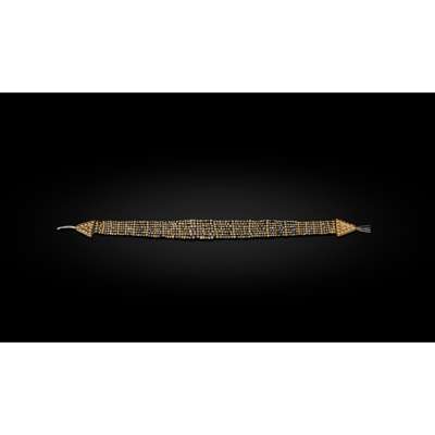 Elegant and simple, this necklace is a very rare surviving piece of Seljuk-era pearl jewellery. Such necklaces were apparently only worn by women. Although little of the jewellery survives, literary sources show that pearl jewellery was esteemed under the Seljuks and their successor states. The Shahnameh of Firdausi, composed in the early 11th century, describes Sindukht arraying herself “all in brocade of gold with pearls and jewels” before meeting Sam. In the Varqa u Gulshah manuscript copied in early 13th century Konya, Gulshah is shown wearing a double-stranded necklace of gold beads and pearls. Pearl jewellery was therefore clearly worn across the early medieval Persianate world (S. R. Canby et al, Court and Cosmos: The Great Age of the Seljuqs, The Metropolitan Museum of Art, 2016, pp. 99-100). With an empire which extended across the Straits of Hormuz and into modern Oman, the Seljuks would have had easy access to fine pearls. For gold belts set with pearls, see Bonhams, Islamic and Indian Art, 14 November 2023, lot 16, and Christie’s, Art of the Islamic and Indian Worlds, 6 October 2011, lot 75.