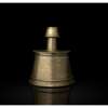 Other elements of the decoration find parallels within the corpus of metalwork from the Jazira and Syria. Although the mounted archer is commonly found on metalwork of the period, the composition her is unusual in that the horse is shown rearing with its head turned back in front of the rider. Although this may have been necessary to fit within the confines of the arch, it gives the scene a great dynamism. A basin in the Louvre in the name of the Ayyubid sultan al-Adil II (inv. no. OA 5991), which can be dated to 1238-40 and is signed by Ahmad al-Dhaki, features a hunting scene on the inside which shows horses represented in much the same way [Makariou, S. (ed.), Les arts de l’Islam au musée du Louvre, Louvre Éditions/Hazan, 2012, illus. p. 177]. Similarly, the wrestlers relate closely to those on both the exterior of the al-Adil basin and a tray in the name of Badr al-Din Lu’lu’, the ruler of Mosul, in the Museum Fünf Kontinente, Munich (inv. no. 26-N-118) [Rice, D.S., “Inlaid Brasses from the Workshop of Aḥmad al-Dhaki al-Mawsili” in Ars Orientalis, Vol. 2 (1957), pp. 283-326, pls. 8a,e and 9f,i]. A further connection to Mosul and the workshop of Ahmad al-Dhaki can be seen in the arch with figures beneath a tree. The individual on the right holds a bottle, while the kneeling figure on the left holds a tube – possibly a flute, or a pellet-gun for shooting birds. Close comparison can be made between this and the scenes of the good life on a ewer in the Cleveland Museum of Art (inv. no. 1956.11), many of which show drinkers and their companions resting below a single, central tree [Rice, ibid., pls. 4-5]. The standing figure with crossed hands most closely resembles the Christian figures on a pyxis in the Metropolitan Museum of Art (inv. no. 1971.39a, b), who have similarly long bodies and are also shown standing in cusped arches. The figure shown on the present candlestick does not appear to correspond to the iconography of a specific saint, but given the regular appearance of such imagery on metalwork from the Jazira and Syria some cross-pollination of imagery is highly plausible, even if the patron or craftsman was not aware of its exact significance [Canby, S.R. et al, op. cit., pp. 265–67].