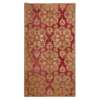 of rectangular form, voided in red with a design of staggered eight-lobed medallions, each containing a radial design of carnations and floral sprigs rising from a central smaller rosette, stretched and mounted