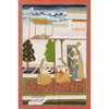 The two ladies on the terrace are seen in deep conversation, one likely to be comforting the other who is patiently waiting for her lover. An empty pavilion in the upper left background signifies that the male lover is not present.