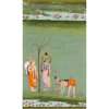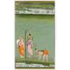 gouache on paper heightened in gold, blue and green border, depicting Rama and Lama to the left under a tree, before them Hanuman bowing, his bow on the ground, water lily ponds in the foreground and in the horizon, verso with various notes