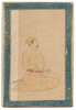 pencil, ink, gouache and gold on paper, gold margin lines, gold sprinkled blue border, depicting the seated prince in profile facing to the right, dressed in a gold and pink turban, a katar and sword secured to his red pakta, verso with a line of inscription in black ink in nagari and in nasta'liq, notes in pencil in English