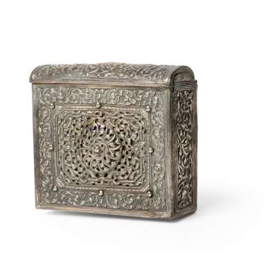 Qur'an 11.2cm x 8cm; silver case 11.5cm x 12.5cm x 4.2cm