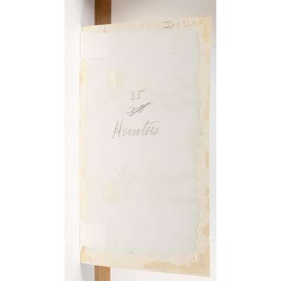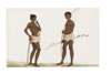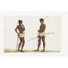 watercolour on paper, depicting a couple dressed in loin cloths facing each other, the male figure holding a bow and three long arrows, the female figure leaning on a staff, verso with notes in pencil, mounted, framed and glazed