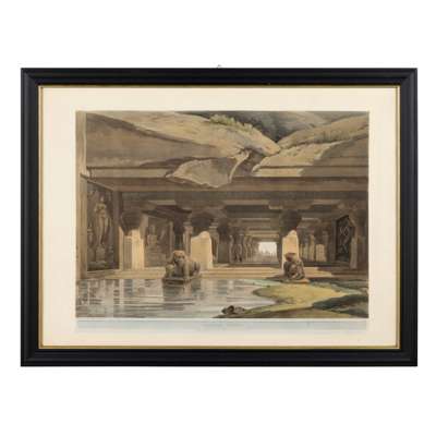 Thomas and William Daniell are arguably the foremost topographical artists produced by Britain. Mastering both oil paint and the delicate aquatint printmaking process. Orphaned at an early age William was adopted by his uncle the renowned landscape painter Thomas Daniell (1749-1840). At the age of fifteen, William accompanied his uncle on a journey to India during which time they executed their first series of aquatints, with the guidance of local Indian craftsmen. This extraordinary journey lasted some eight years, ranging from Calcutta to Delhi and as far as Garhwal in the Himalayas. Upon their return to London Thomas and William began work on the aquatints of Oriental Scenery (1795-1808) which took 13 years to complete and within which this work is featured.