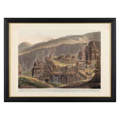 Thomas and William Daniell are arguably the foremost topographical artists produced by Britain. Mastering both oil paint and the delicate aquatint printmaking process. Orphaned at an early age William was adopted by his uncle the renowned landscape painter Thomas Daniell (1749-1840). At the age of fifteen, William accompanied his uncle on a journey to India during which time they executed their first series of aquatints, with the guidance of local Indian craftsmen. This extraordinary journey lasted some eight years, ranging from Calcutta to Delhi and as far as Garhwal in the Himalayas. Upon their return to London Thomas and William began work on the aquatints of Oriental Scenery (1795-1808) which took 13 years to complete and within which this work is featured.