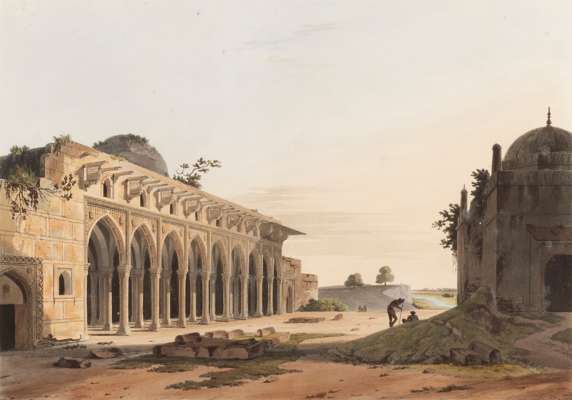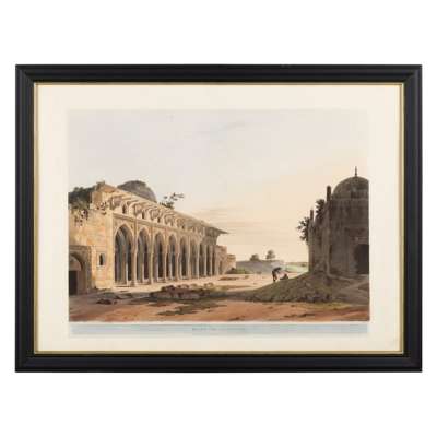 Thomas and William Daniell are arguably the foremost topographical artists produced by Britain. Mastering both oil paint and the delicate aquatint printmaking process. Orphaned at an early age William was adopted by his uncle the renowned landscape painter Thomas Daniell (1749-1840). At the age of fifteen, William accompanied his uncle on a journey to India during which time they executed their first series of aquatints, with the guidance of local Indian craftsmen. This extraordinary journey lasted some eight years, ranging from Calcutta to Delhi and as far as Garhwal in the Himalayas. Upon their return to London Thomas and William began work on the aquatints of Oriental Scenery (1795-1808) which took 13 years to complete and within which this work is featured.