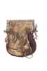the square topped brass hinged cantle with ring and dot decoration to front, the reverse with iron loops, locking mechanism and engraved IMK, with leather and hair pouch