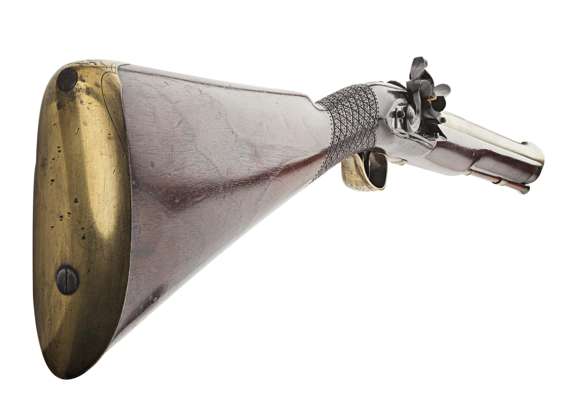 It's re modelling in c1770 by the gun maker to the King, Henry W Mortimer, perhaps suggests that when it was taken it had a broken or damaged stock and even if not it shows the high regard in which this firearm was held, some 50 year later.