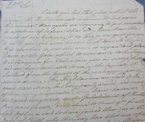 Contemporary account of the defence of Edinburgh, 1745, Manuscript letter