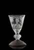 A handful of deliberately broken Jacobite glasses are recorded. Some preserved with the addition of a simple wooden foot such as this and, indeed, one exists with a silver foot added by Jacobite silversmith Patrick Murray of Stirling.