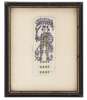 the section of silk ribbon woven with figure of a Highlander (likely to represent Bonnie Prince Charlie) in harlequin dress with sword and targe, in ebonised and gilt glazed frame