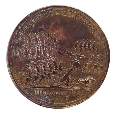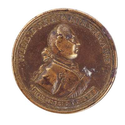 after M.Holtzhey, obverse with right facing bust of William Duke of Cumberland, reverse with scene of the battle with motto 'Rebellion justly Rewarded, Culloden 1746'
