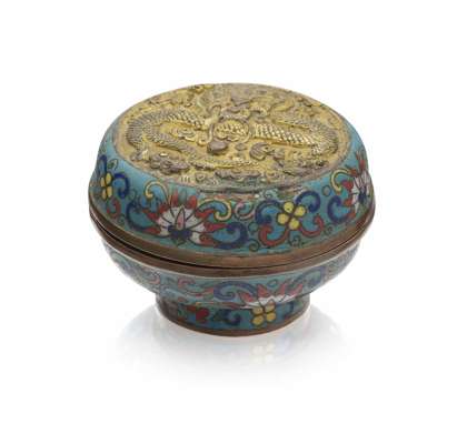 CLOISONNÉ AND GILT BRONZE BOX AND COVER