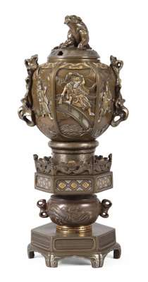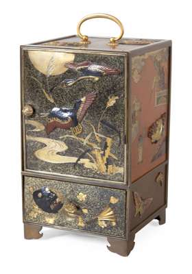 FINE JAPANESE MIXED METAL BRONZE TABLE CABINET