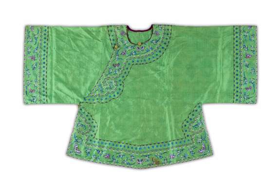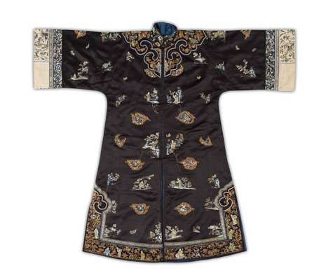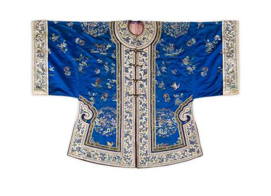 EMBROIDERED SILK BLUE-GROUND LADY'S ROBE