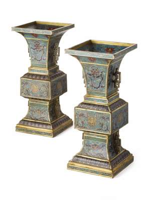 PAIR OF GU-SHAPED CLOISONNÉ VASES