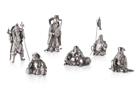 SET OF JAPANESE SILVER FIGURES OF IMMORTALS