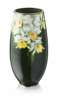 of elongated ovoid form and decorated with white and yellow orchids on a dark green ground, Ando mark to the base