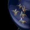 of ovoid form, decorated with two birds waiting to take flight and join their flock, perching on rocks by a pond surrounded by bamboo and flowery branches, with keyfret border to foot and rim