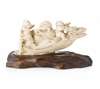 finely carved depicting the laughing hotei and three boys in a dragon boat, the underside signed, with carved wood base