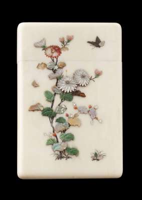 JAPANESE CARVED IVORY AND SHIBAYAMA INLAID CARD CASE Y