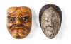 modelled as an old woman, 4.5cm; together with another WOOD MASK NETSUKE, modelled as Aobuaku (2)