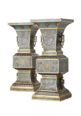 PAIR OF GU-SHAPED CLOISONNÉ VASES