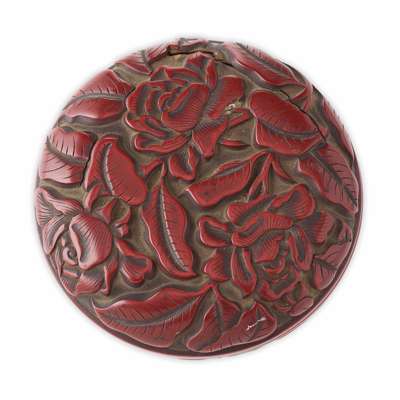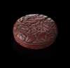 RARE CINNABAR LACQUER CIRCULAR SEAL PASTE BOX AND COVER