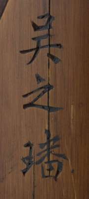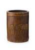 of hollow cylindrical form, carved in relief with a foreigner leading a horse under a willow tree, incised Wu Zhi Pan, the interior and the base painted